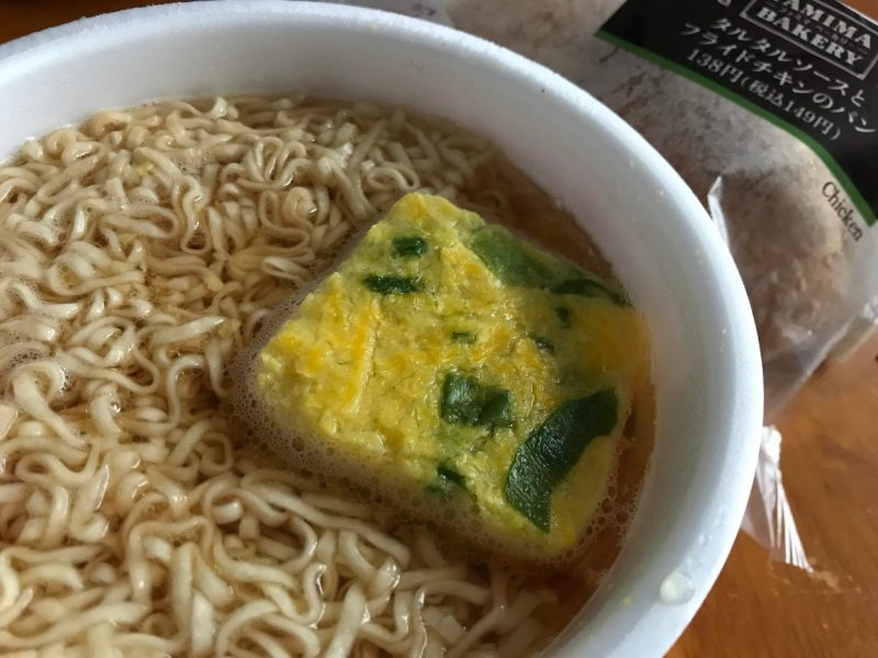 選んだのはカップ麺の『チキンラーメン』と『タルタルソースとフライドチキンのパン』。