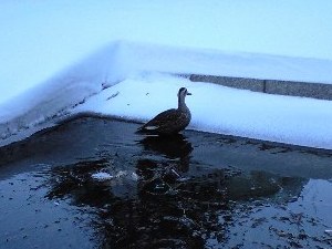 このカモは渡り鳥ではないのだろうか ?