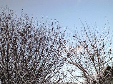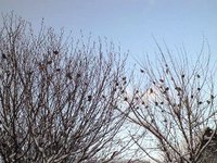 変則的に第二コースを歩いたが、途中にある庭木に大量のスズメが 『生って』 いた びっくり