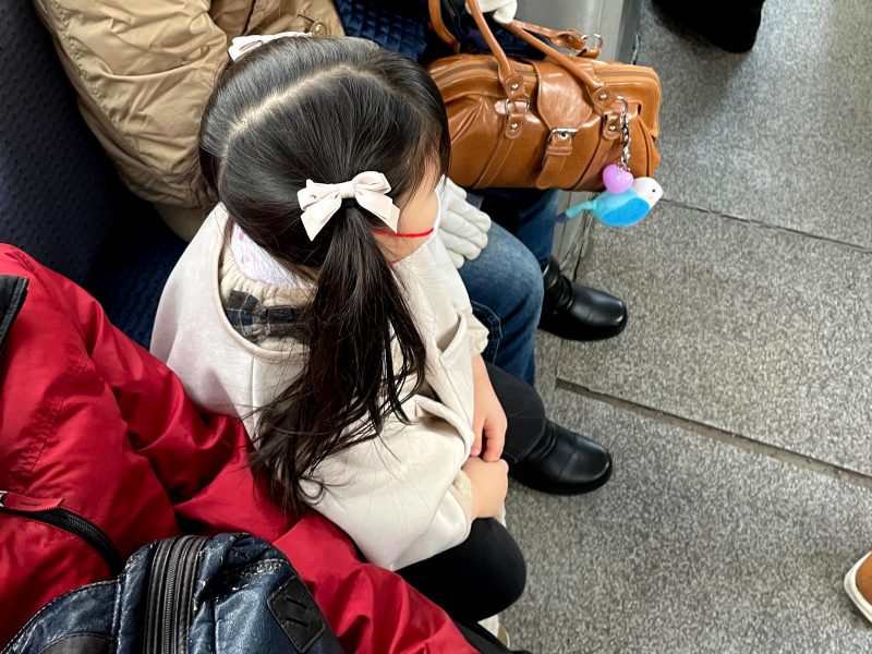 小さな女の子と胸に生まれたばかり赤ちゃんを抱いた母親が乗ってきて、女の子と少し離れた場所に母親と赤ちゃんが座った。