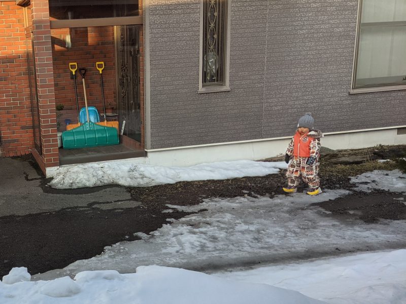 裏には家庭菜園の畑があり、そこは雪が積み上がっているので、雪遊びをしていたのだろう。