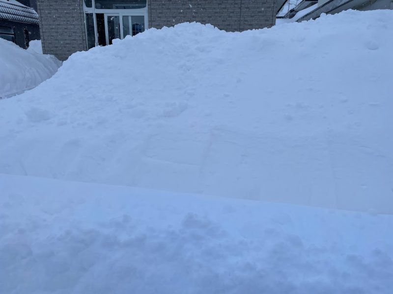 そこに降った雪を積み上げていくと、その高さは優に 1メートルを超えて道路側からは家が見えないほどに