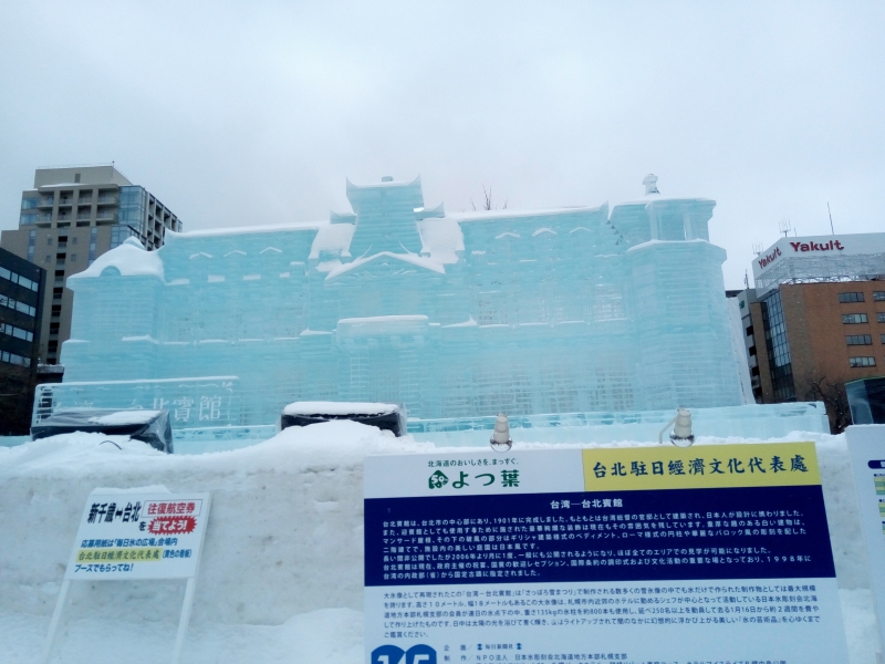 02/09(木) 18:46現在 投稿日 2017年2月9日投稿者 『お買い物日記』担当者昨日は札幌で検診を受けてきた。雪まつりの期間中なので、病院が終わってから少しだけ大通り会場へ行ってみた。これは雪ではなく氷で作ったようだ。外国人の観光客も大勢いて、賑わっていた