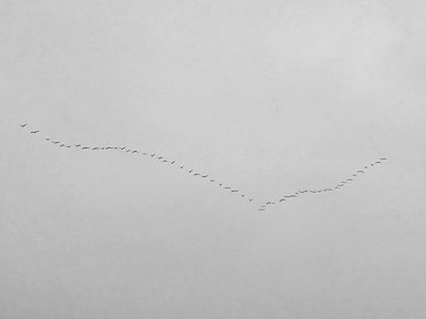 今朝の散歩中、V字飛行をしている白鳥を見た ひらめき