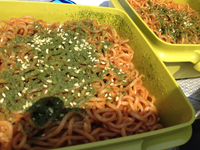そんな我家の昼食は大好物のホンコンやきそばを容器に詰めて ポッ
