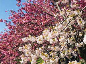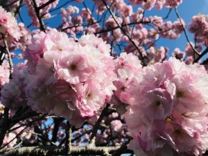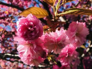薄いピンクと濃いピンクの八重桜も 七~八分咲きといったところか。