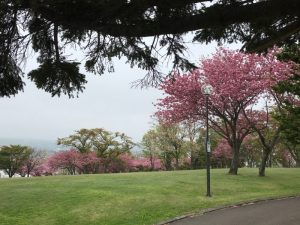 昨日の散歩は山登りのような金曜コースだったが、山頂の公園の桜も七分咲きといったところか。