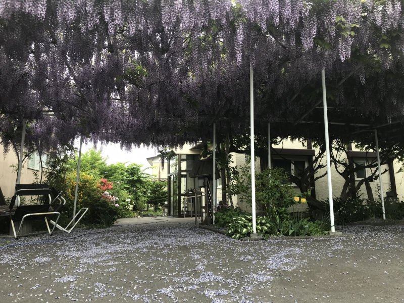 今朝の散歩で見たご近所の藤棚が綺麗だった