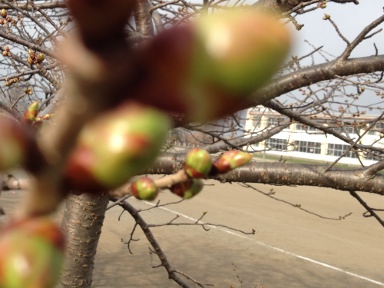 小学校の裏の桜の芽もぷっくりと膨らんできた にこにこ