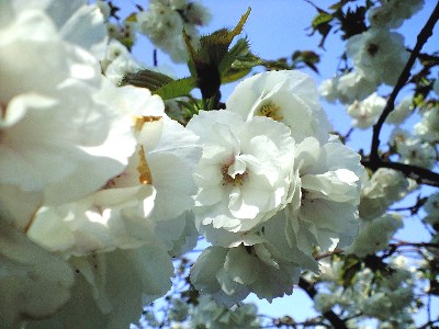 品種に詳しくないが、白に近いピンクの八重桜が満開になっていた にっかにか
