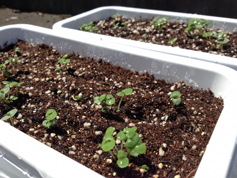 24日に発芽したバジルが少し大きくなった。