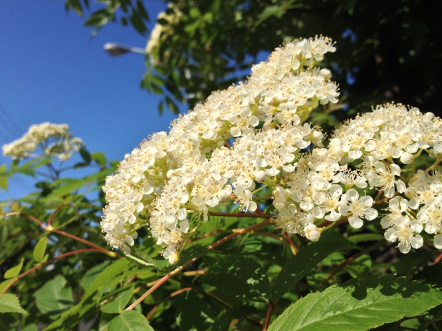 06/04(火)22:30現在 投稿日 2013年6月4日投稿者 雑感担当者昨日の独り言にも書いたことの繰り返しになるが、今日は写真付きで いつもの公園の桜も終わり、小学校裏の遊歩道の桜も終わった。_lしかし、白と紫のライラックは満開だ。そして、ナナカマドの花も咲いている。やっぱり良い季節だ
