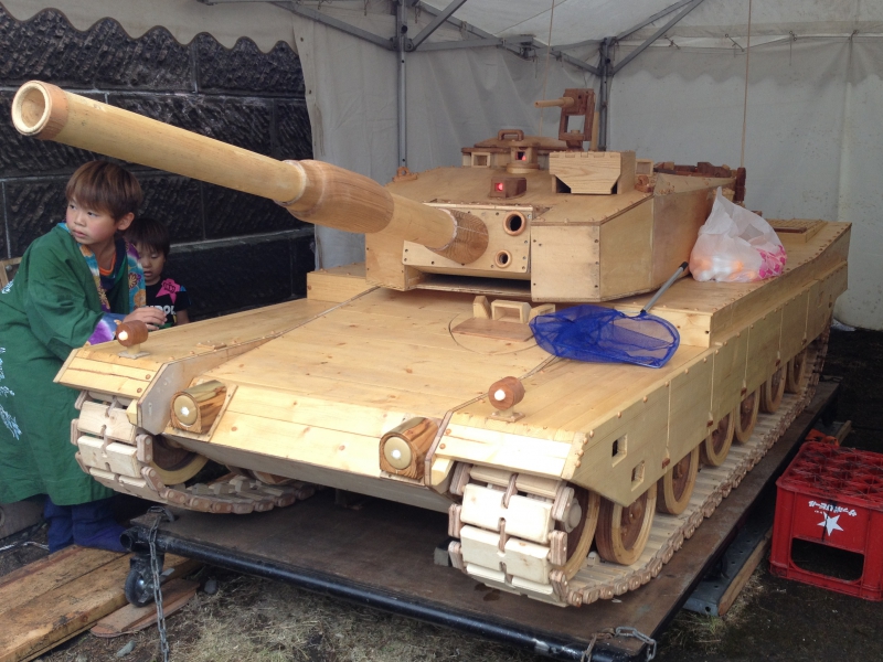 会場には木製の戦車