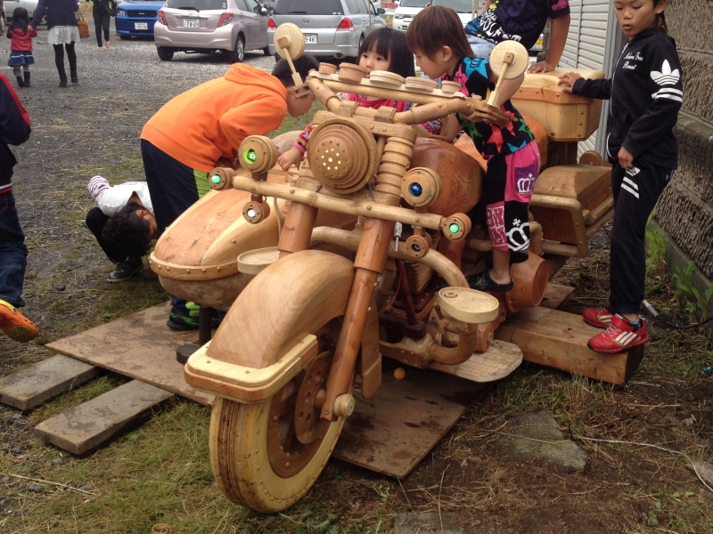 そして木製のサイドカー付きオートバイ