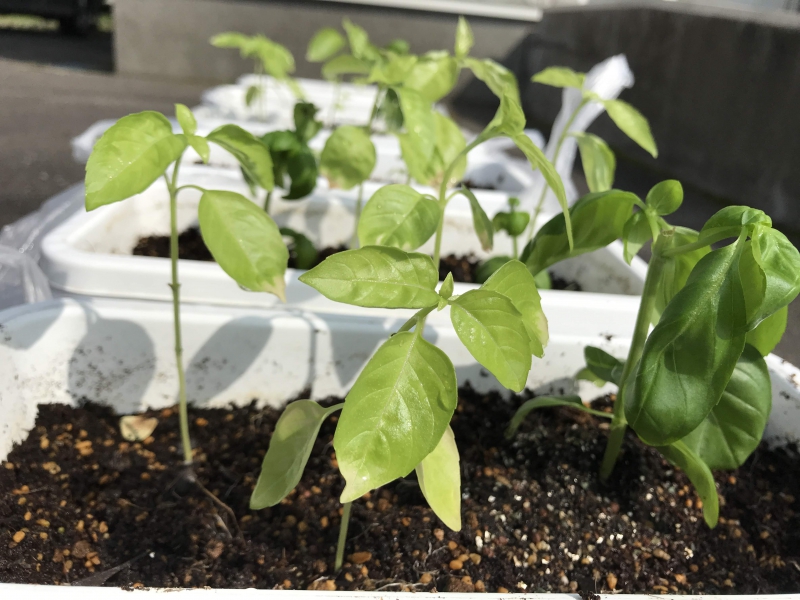 午後から6月17日に植え直したバジルの間引きをした。