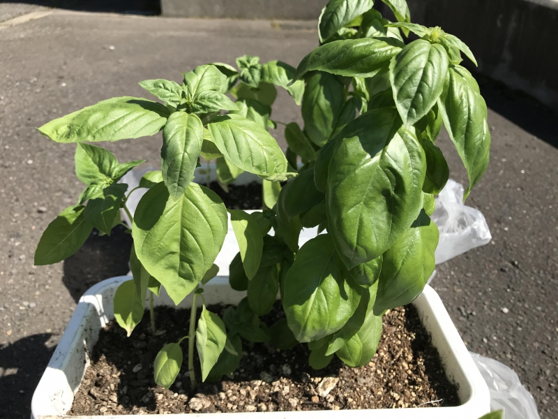 08/02(木) 21:52現在 投稿日 2018年8月2日投稿者 雑感担当者本当にバジルの育ちが良くなった 7月25日時点で復活の兆しを見せていたが、それも今では見事に葉が茂っている。6個のプランターのうち、2つは収穫できるまで葉が大きくなった。という訳で、まずは楽しみに待っている隣の妹ちゃんとマユちゃんに食べてもらおうと、『お買い物日記』 担当者が LINEで知らせると、妹ちゃんから 「わーい」 という返信がきて明日の午後に収穫することになったらしい 果たして何枚くらい葉を摘むことができるだろう