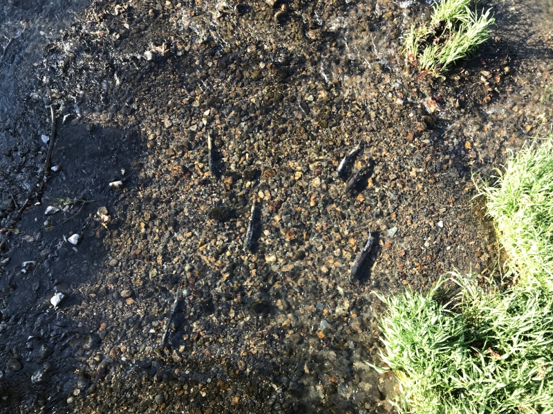 台風で流され、今年 3月に橋が架け直されたこともあって川の流れ、川底の地形が変わってしまったことと、下流でも大規模な河川工事が行われて大きく環境が変わってしまったので心配していたのだが、今年も元気に鮭たちは故郷に帰ってきてくれた