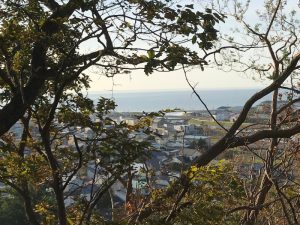 海抜 33メートル程度の高さだが、山頂の木々の間からは遠くを臨むことができる ![]()