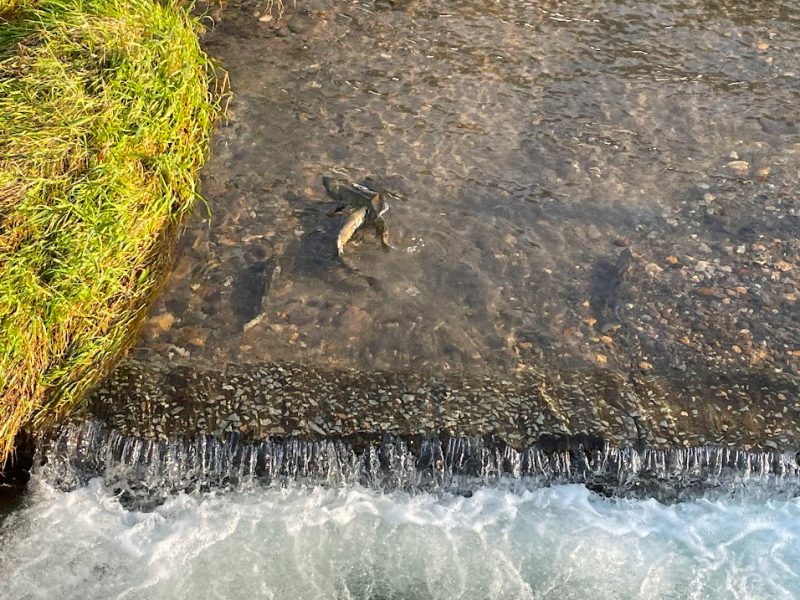 先週、鮭が遡上しているのを見たが、今でも多くの鮭が川を登っている。