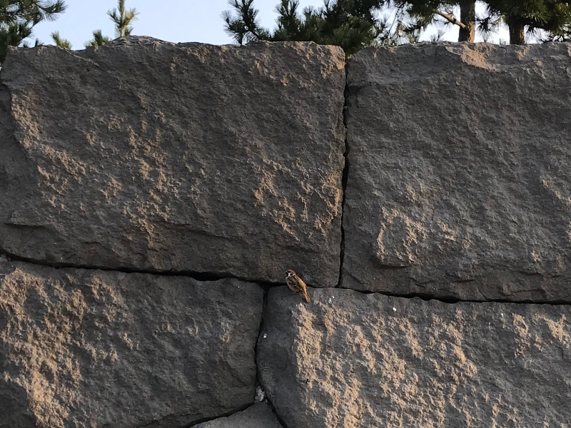 先日の独り言で公園の石垣にスズメが戻ってきたと書いたが、今朝の散歩でも多くのスズメが可愛らしい姿を見せてくれた