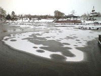 第一コースを散歩したが、公園の池も凍ってカモの姿はない。
