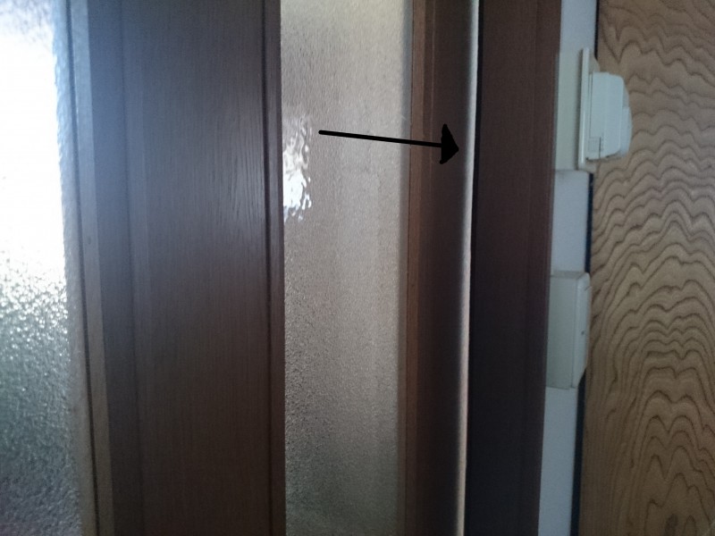 この隙間を埋めるために向こう側に縦に貼り付けたところ、冷たい空気の流れを防いてくれているような気がする。