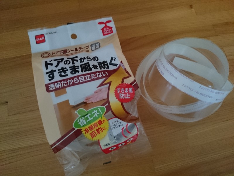 本来は、ドアの下からのすきま風を防ぐためのシールだが、これを縦に貼ることにした。