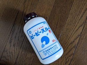 そこで前に買っておいた、排水口の掃除に一番良いという評判の「ピーピースルー」を撒いて温水を流し入れ、1時間ほど経ってから水で流した。