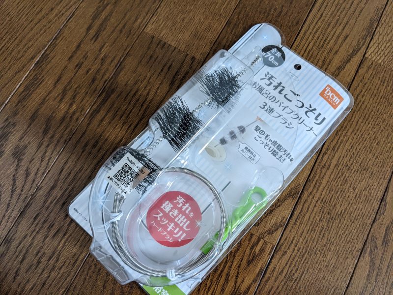 これで大丈夫だと思ったが、数時間でまた流れが悪くなり、これはもうブラシを使うしかないということでホームセンターに行き、「パイプクリーナーブラシ」を購入してきた。
