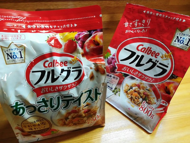 今まであったフルグラの棚には、「あっさりテイスト」しかなかったので、それを買ってきた。